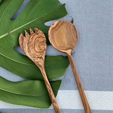 12" Olive Wood Modern Salad Serving Set