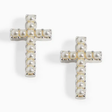 Featuring a delicate cross design accented with pearl details, these earrings add a subtle, meaningful touch to any look. Crafted from a durable mi...