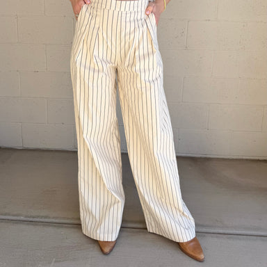 These striped high-waisted pants feature a flattering high-rise fit, a comfortable elastic back waist, and a relaxed wide-leg silhouette for effort...