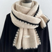 Made from soft deer hair, this knitted scarf features a classic overlock design. Available in off-white and measuring 170 × 25 cm, it’s perfect for adding warmth and style to any outfit.