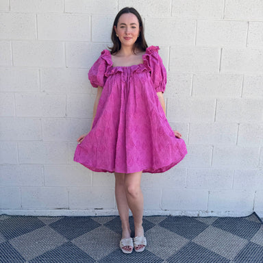Open knit crochet cardigan designed with a delicate geometric pattern for a breezy, relaxed fit. Features a scalloped hem, soft collar, and pla...