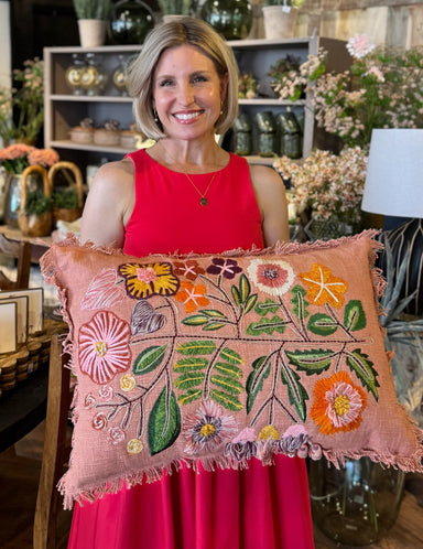 Elevate your home decor with our exquisite Cream Hand-Embroidered Sequin Lumbar Pillow. Measuring 24"L x 12"H, this hand-embroidered pillow boasts ...