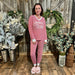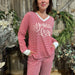 Red and cream striped pajama set featuring a soft cream base adorned with our custom Yum Love signature print — cozy, classic, and designed for effortless comfort.
