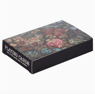 A 54-card playing deck from our Moody Collection displaying various designs of hand painted florals in a deep color palette. The back of each car...