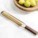 This 14" grater features a gold-plated surface with a sturdy wood and steel construction. Measuring 1.77" × 0.69" × 14.25", it is perfect for grating cheese, vegetables, and other ingredients with style and durability.