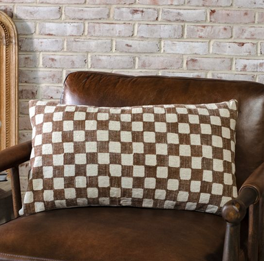 Chocolate Brown Check Pillow features a classic checked pattern in a rich chocolate brown tone, adding warmth and timeless style to any space. Craf...