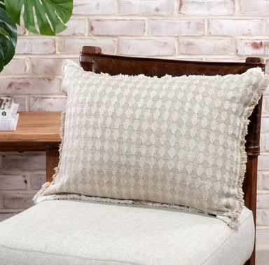 14″ × 20″ Beige Diamond Fringe Pillow features a charming diamond pattern with playful fringe detailing, adding texture and visual interest to any ...