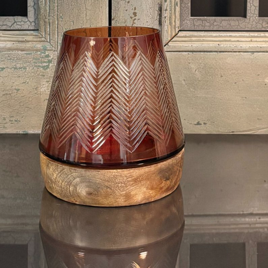 Crafted from rich amber-toned glass with a subtle etched finish, the Hillsborough Vessel rests gracefully atop a warm wooden base. Its softly textu...