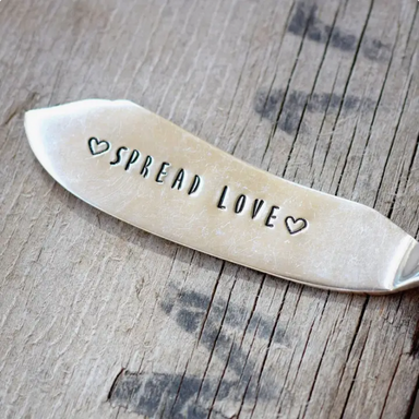 Vintage silver plate butter knives. Hand-stamped with "spread love".