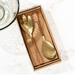 This 2-piece salad set features gold stainless steel utensils with wooden handles. Measuring 13" × 6" × 2", it is perfect for tossing and serving salads while adding a stylish touch to your dining table.