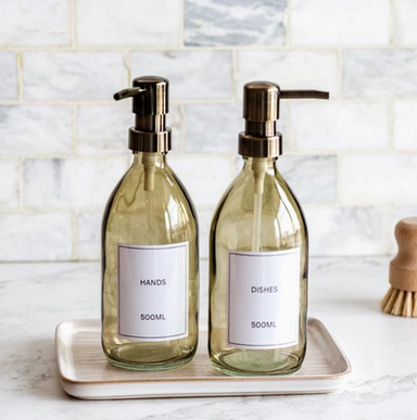 This glass soap pump measures 2.95" × 2.95" × 8.66". Available in two assorted designs, each pump is sold separately and is perfect for dispensing ...