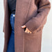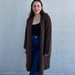 Loose fit long cardigan with a relaxed drape, featuring a shawl collar, dropped shoulders, and two side pockets for added functionality. Made with a soft, stretchy knit for comfortable layering.