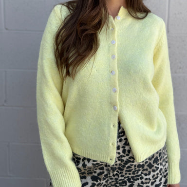 This marled knit cardigan features a ribbed round neckline and a classic button placket. Designed with long sleeves, ribbed cuffs, and a ribbed hem...