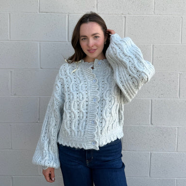 This cozy cable knit cardigan features delicate scallop edge detailing for a soft, feminine finish. Designed with a classic fit and textured knit p...