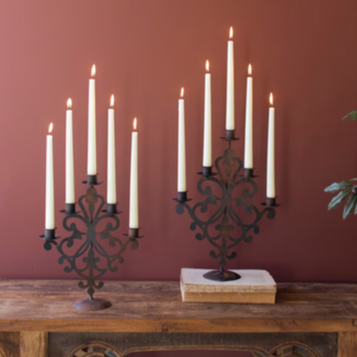 This set includes four hand-forged cast iron taper holders in sizes 3" × 11¾", 3" × 15½", 4" × 19½", and 4" × 23½". Finished in elegant brass, each...