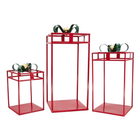 Christmas Present Lanterns designed to resemble wrapped gift boxes with classic holiday detailing. Available in three sizes—large, medium, and smal...