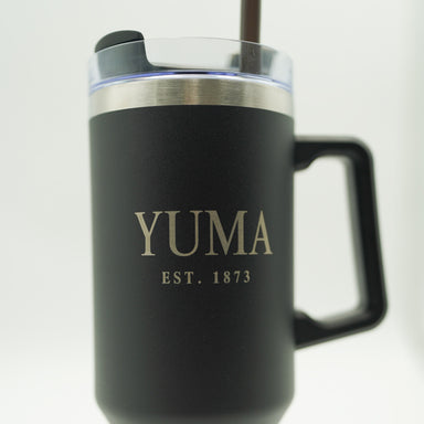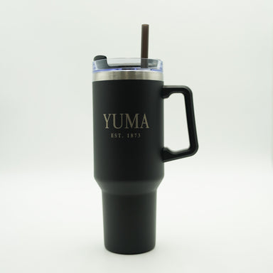 Experience maximum hydration on-the-go with our 40oz Yuma Tumbler! Perfect for travel, this sleek black travel mug features a laser-etched logo for...