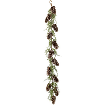 This 60-inch garland features a mix of iced pine cones and lush green pine foliage, creating a natural and festive look. Perfect for draping over m...