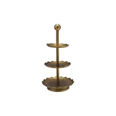 This compact 3-tier tray features scalloped edges and a gold finish, perfect for displaying small decor, treats, or trinkets. Made of durable iron ...