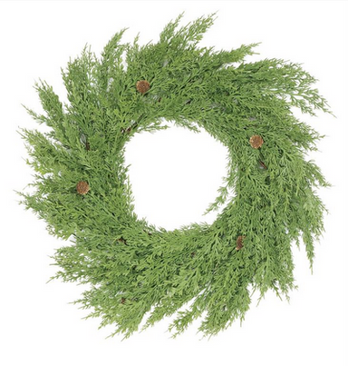 Welcome the holiday season with our 28" Cedar Wreath! Made from fresh cedar and accented with green pine cones, this wreath brings the warm and coz...