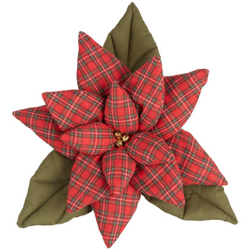 This 18-inch pillow features a festive plaid pattern adorned with vibrant red and green poinsettias, adding cozy holiday charm to any living space....