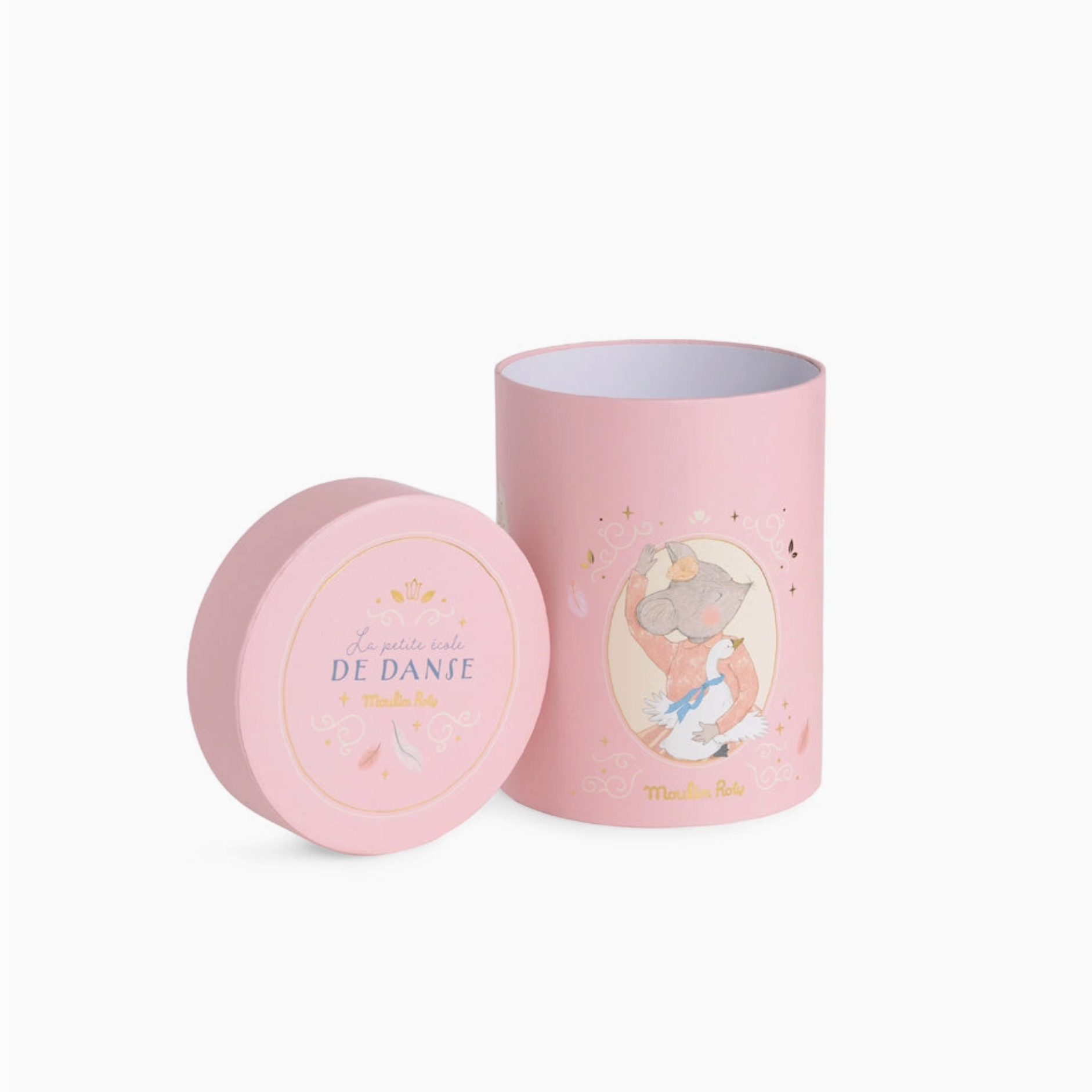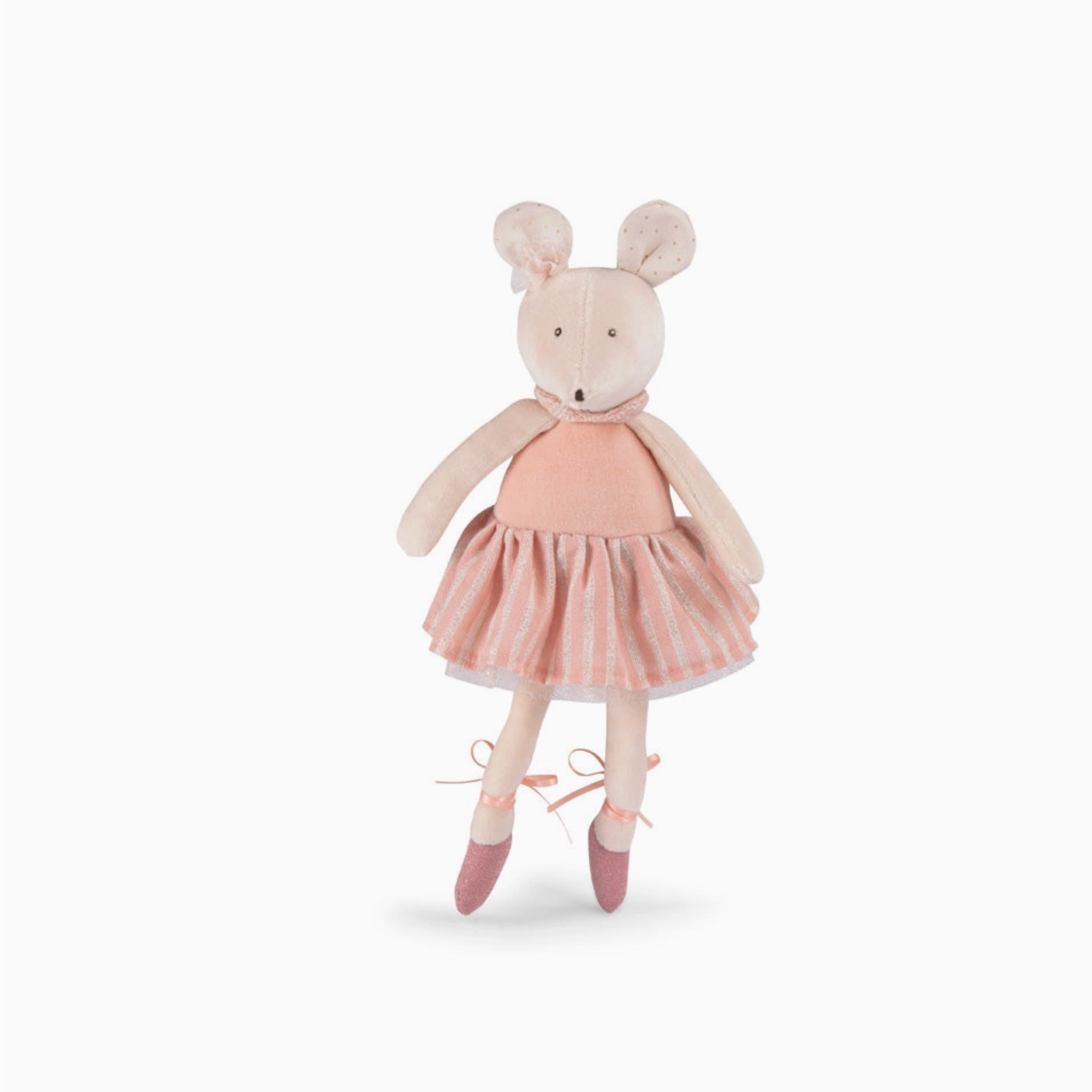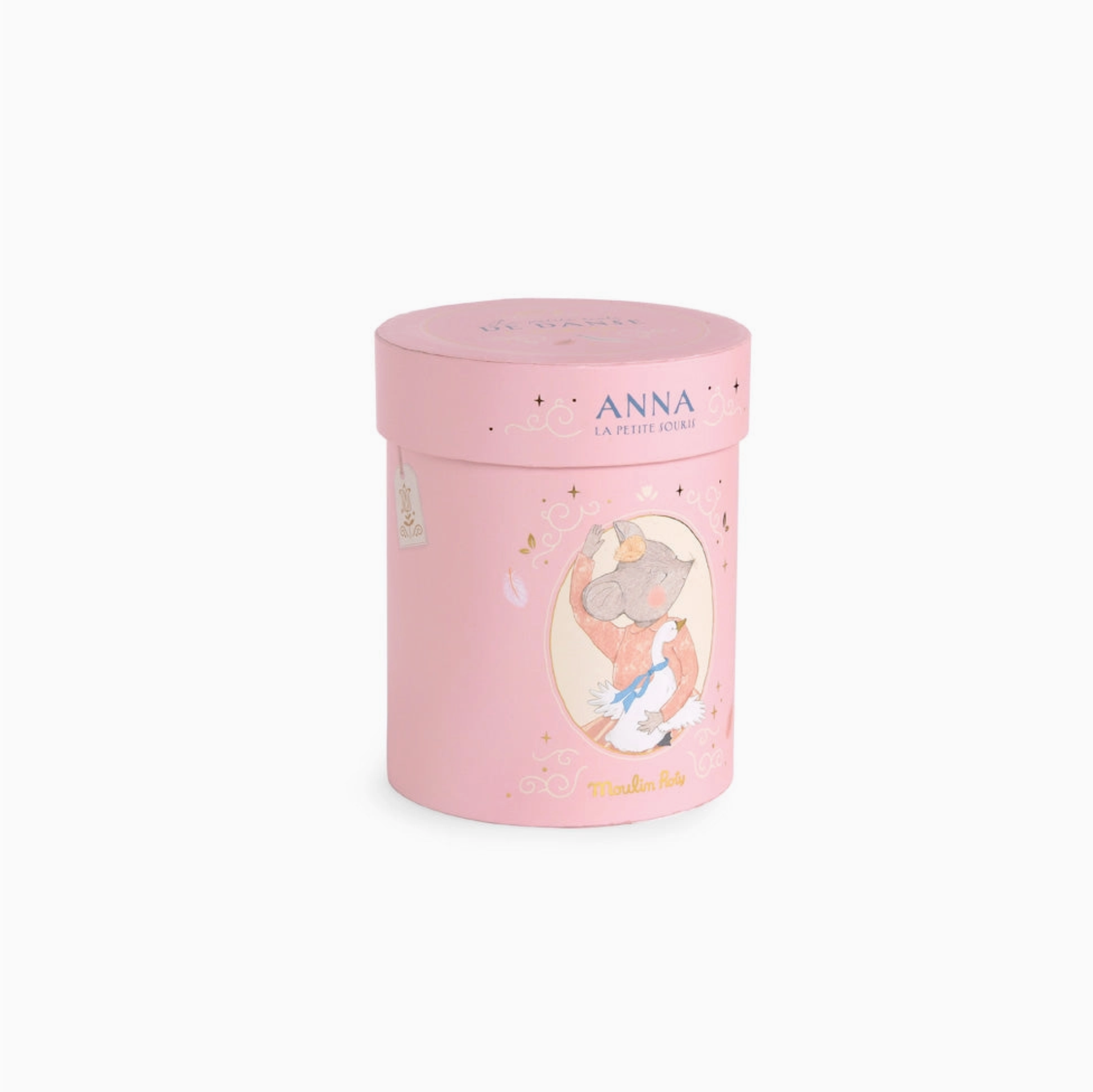 Anna The Mouse is a delightful companion, with a charming embroidered face and dainty powdered cheeks. Her pink Peter Pan collar, striped skirt, and ballet shoes make her a beautifully dressed friend. Perfect for creating enchanting memories, she comes in a gilded round gift box.